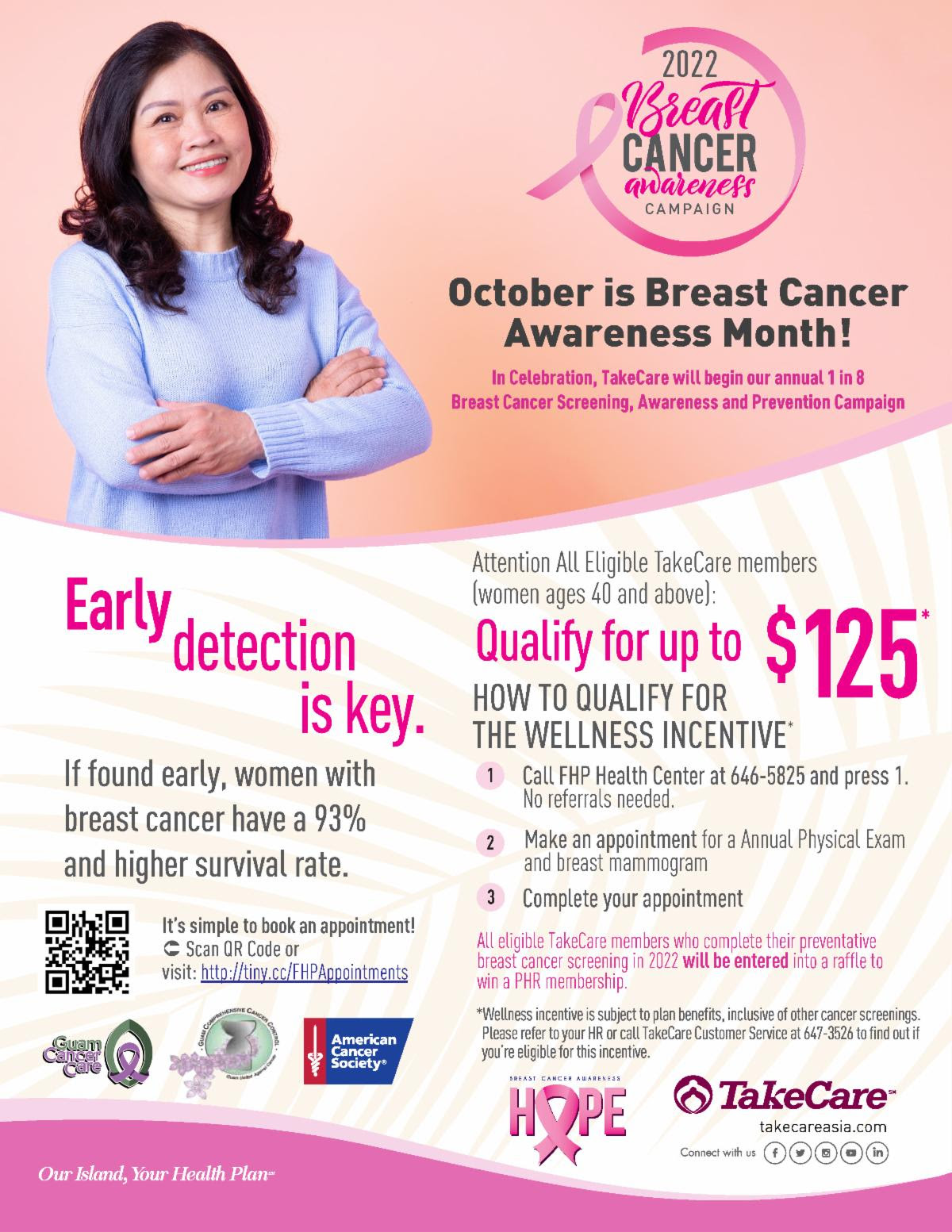 TakeCare's Breast Cancer Screening Awareness campaign continues through November and ends on December 31, 2022. To schedule an appointment, click here.