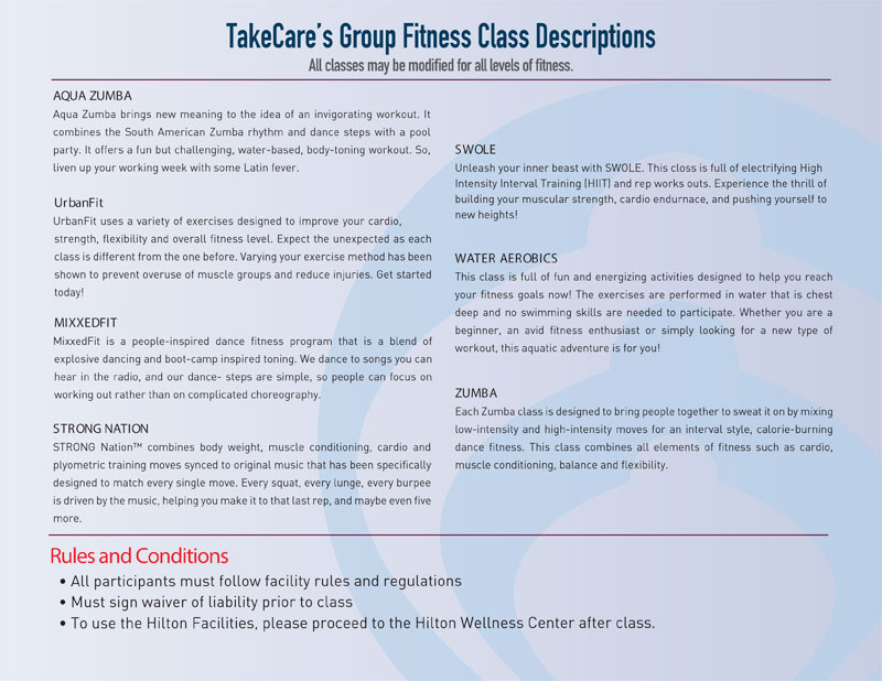 Choose a variety of FREE Group Fitness Classes that’s right for you!